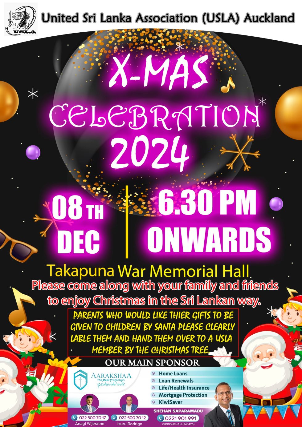 The United Sri Lanka Association (USLA) Auckland warmly invites you and your family to join our Christmas Celebration 2024, a joyful evening filled with festive spirit, cultural connection, and community togetherness.