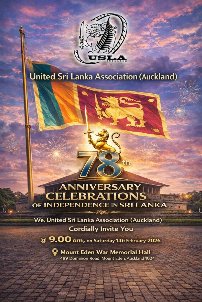 The United Sri Lanka Association (Auckland) warmly invites you to join us in celebrating the 78th Anniversary of Sri Lanka’s Independence. This special event honours Sri Lanka’s rich history, culture, and national pride, bringing the community together for a meaningful and memorable celebration. The programme will take place on Saturday, 14th February 2026, starting at 9:00 AM, at the Mount Eden War Memorial Hall, Auckland. The morning will feature ceremonial proceedings, cultural elements, and community participation to commemorate this important national milestone. We welcome families, friends, and community members to come together and celebrate Sri Lanka’s independence in a spirit of unity and pride.